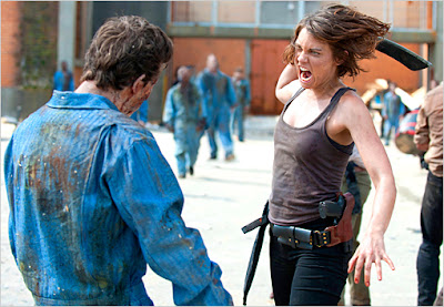 (Image: Maggie Greene (portrayed by actress Lauren Cohan) prepares to drive home her point in The Walking Dead, AMC)